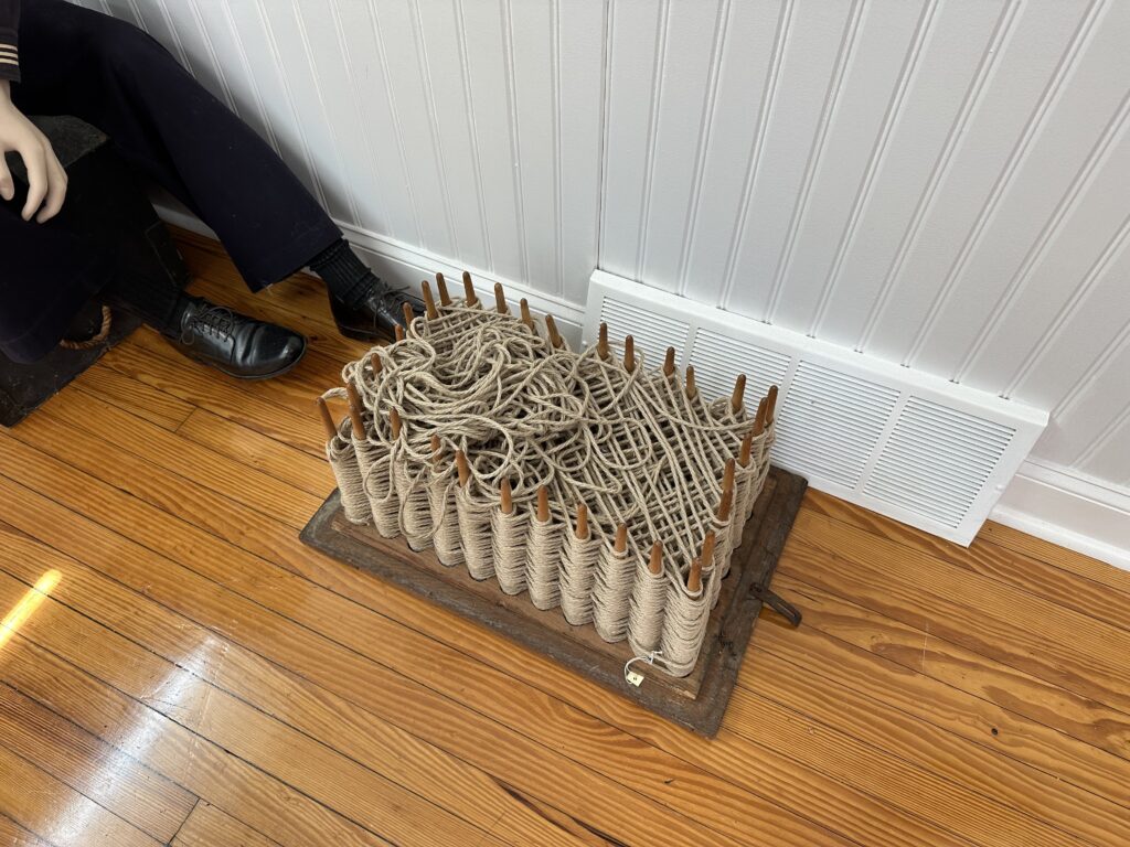 So first the tour guide took us to a conference room and talked about some lifesaving equipment and times when they helped some boat. He talked about a big spool of rope (in picture below)