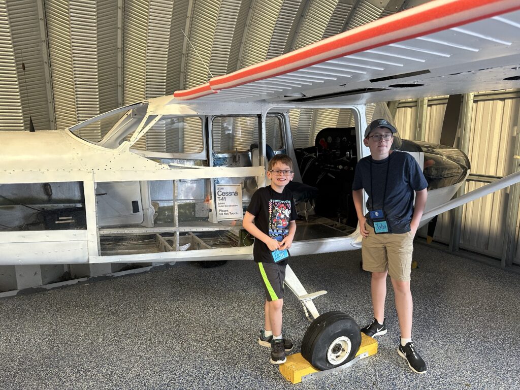 On the second day, however we went on a Cessna 172, and took off from an Air Force Base! You do not get to do that every day!! We went on a flight simulator which was an Xbox series X running Microsoft Flight Simulator 2020. We also saw a KC-10 Extender boom pod and boom. And the body parts of the same type of Cessna we had flown in!!